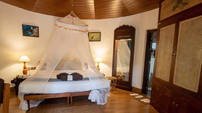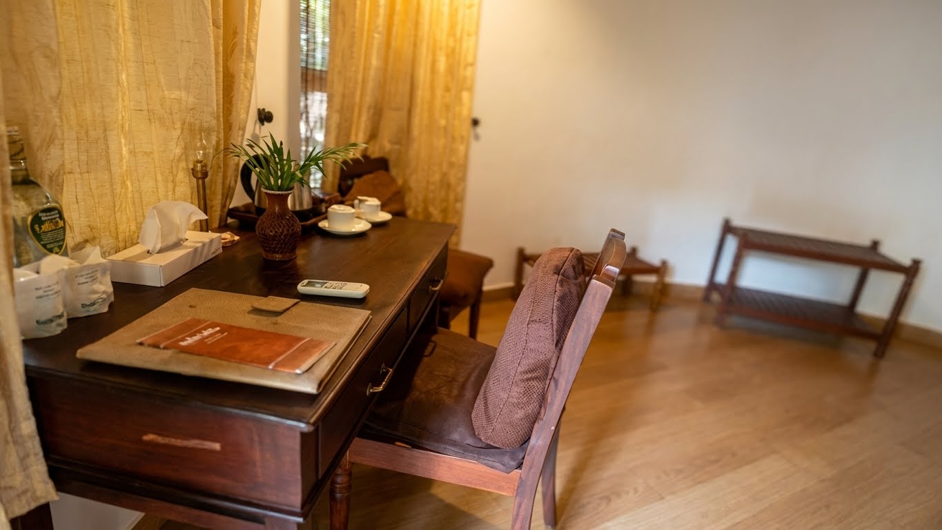 In addition to daily Ayurvedic treatments, Manaltheeram offers yoga and meditation sessions, cooking classes, cultural performances, and lectures on Ayurveda and holistic wellness. Booking with Ayurooms gives you access to a complimentary Kerala backwaters cruise and local shopping tour, providing a chance to explore Kerala’s natural beauty and cultural richness. These curated inclusions enhance your experience at one of the top wellness retreats in South India.